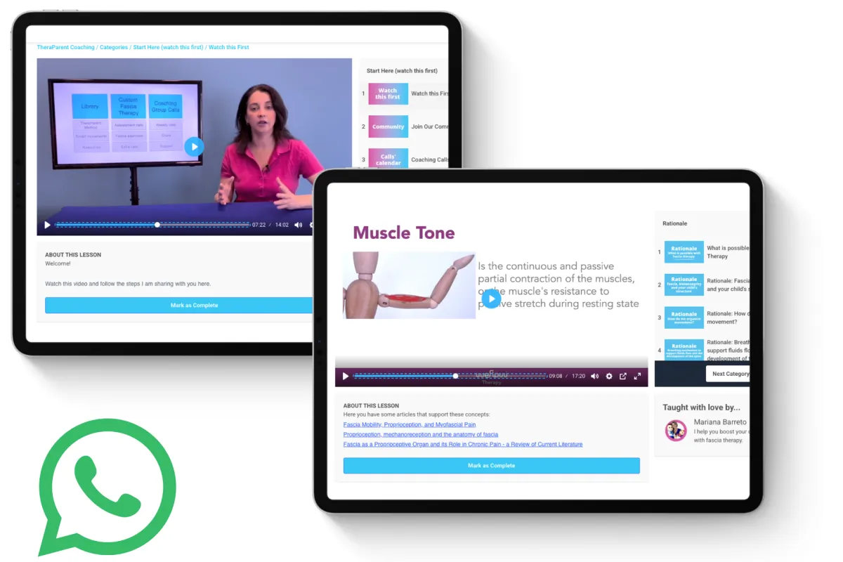 Tienes acceso a la grabación de todas las llamadas de seguimiento y a una selección de clases sobre fascia, movimiento, ideas para el hogar y ¡mucho más! Para repasar y profundizar a tu propio ritmo.